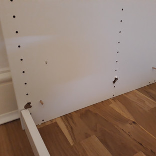 I began to check through all the items to find that some of the panels were damaged. I immediately showed this to my customer who was unaware of this. I explained that the cam screws had been pulled out of one of the frames both at the top and the bottom, creating unusable panels (See Pictures). She later told me that her son had heard a "crash" not long before the previous assembler (I use the world assembler very loosely) left. He had obviously broken one of the frames of the wardrobe and left without telling the customer.
